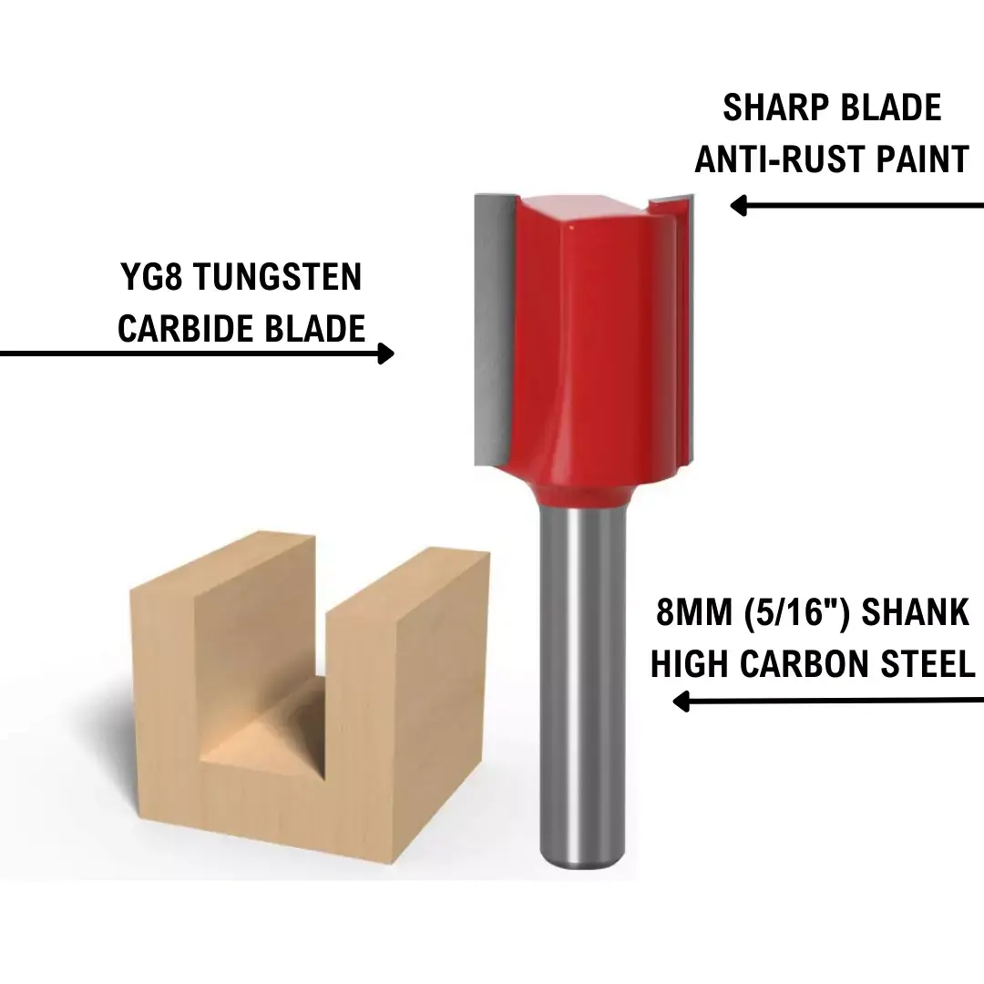 Straight Bits: 3mm, 6mm, 7mm, 12mm, 16mm – perfect for straight cuts, dados, and grooves